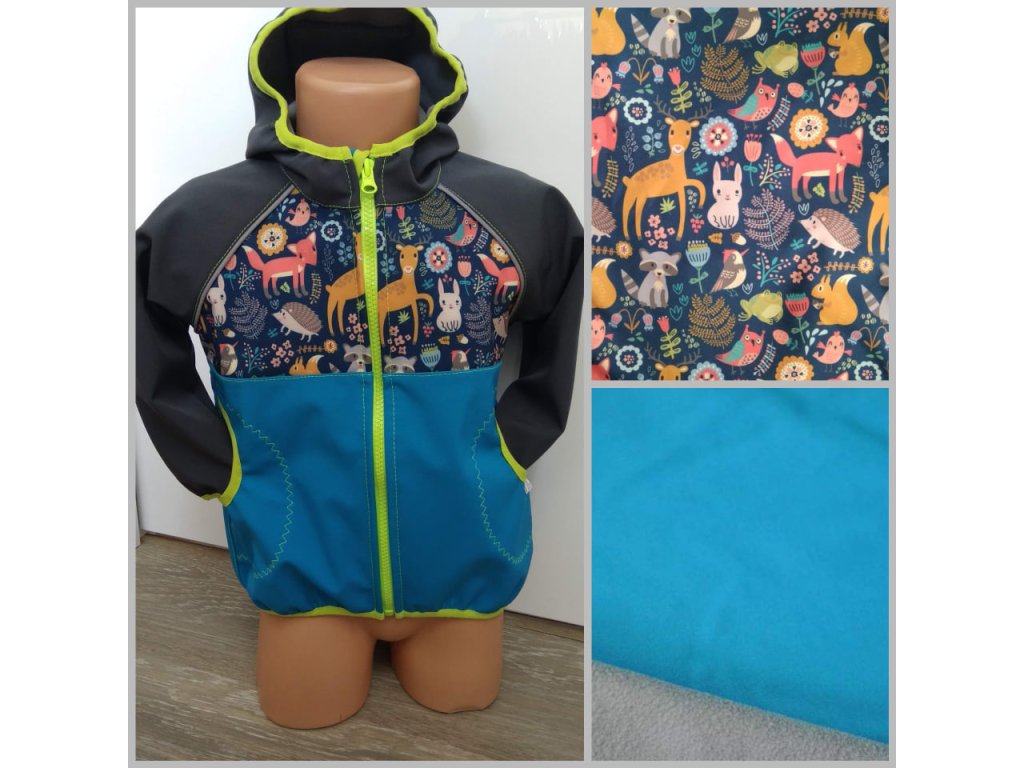 Softshellová bunda – tyrkys – šedá – zvířátka